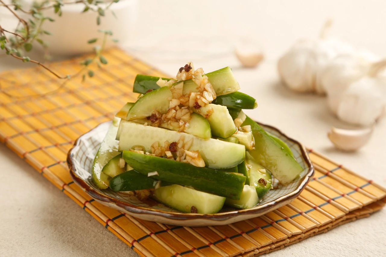 黃瓜含有豐富的水分和維生素,具有清熱解暑、生津止渴的作用。將黃瓜洗凈拍碎,加入蒜末、醋、鹽等調(diào)料拌勻,制成清爽可口的涼拌黃瓜,既開胃又解暑。