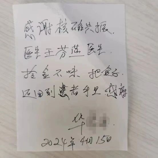 王芬燕沒有猶豫,立即根據(jù)檢查記錄找到了病人的聯(lián)系方式,并迅速與失主取得了聯(lián)系。當(dāng)失主接到電話,得知自己的金手鐲和金戒指被王芬燕撿到并妥善保管時,她激動得幾乎說不出話來。不久后,失主趕到醫(yī)院,從王芬燕手中接過了失而復(fù)得的貴重物品。
