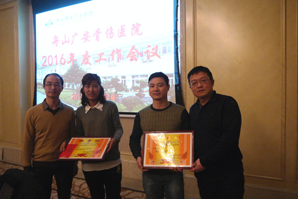 會上郭維杰院長就2015年全院工作作了總結(jié)報告。郭院長指出,2015年在各科室的配合下,緊緊圍繞年初工作計劃和要求,不斷強(qiáng)化管理,提高自身管理水平,加強(qiáng)工作能力及溝通能力;努力提高醫(yī)療技術(shù)水平,加強(qiáng)人才隊伍的建設(shè),形成了積極上進(jìn),講技術(shù)講學(xué)習(xí)的氛圍;加強(qiáng)科技興醫(yī),努力提高醫(yī)療水平。各科室認(rèn)真工作,團(tuán)結(jié)協(xié)作,保證了全院各項醫(yī)療工作的正常開展。切實加強(qiáng)與上海各醫(yī)院專家的合作,極大地提高了醫(yī)院的知名度,更有利于醫(yī)院醫(yī)療技術(shù)和管理水平的提高;創(chuàng)新經(jīng)營模式,提高服務(wù)水平,促進(jìn)醫(yī)院發(fā)展。老年護(hù)理院規(guī)模逐漸擴(kuò)大,得到政府與人民群眾的一直好評。新開辦了醫(yī)學(xué)整形美容科、腫瘤科,并初見成效。醫(yī)療營銷工作不斷加強(qiáng),院前急救水平不斷提高,為病人服務(wù)、為臨床服務(wù)的理念不斷增強(qiáng),保證了醫(yī)院各項工作有序進(jìn)行并上了一個新的臺階;積極開展公益活動,努力提升醫(yī)院社會形象。做好了為期二年的“舟山廣安”脊柱關(guān)節(jié)疾病關(guān)愛項目。6月份開展了“為困難老人縱光明”活動,12月份成立了舟山首家民營醫(yī)院紅十字組織及紅十字志愿服務(wù)隊。