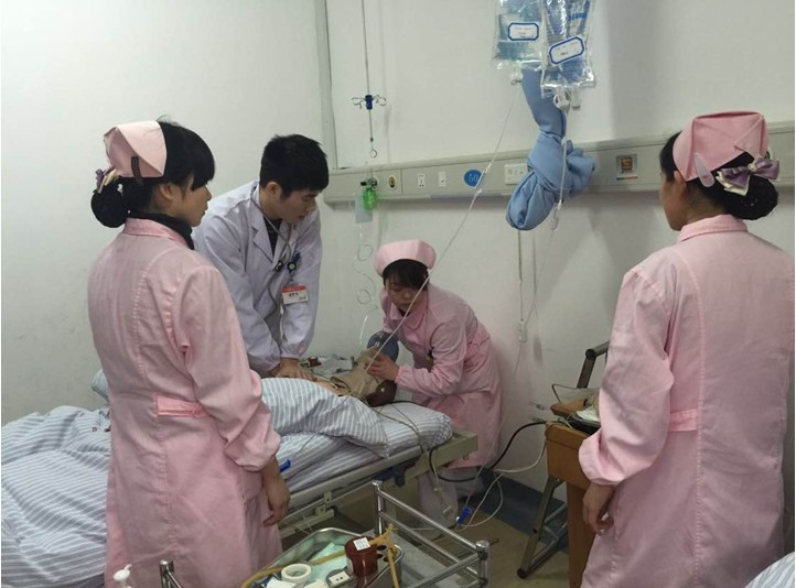 患者在輸液過程中出現(xiàn)過敏性休克怎么辦?這是考驗醫(yī)護人員急救技能和護士應(yīng)急能力的重要課題。1月28日下午14:50廣安醫(yī)院脊柱科病區(qū)進行了一場“青霉素過敏性休克急救演練”。副院長劉志安,護理部總長應(yīng)娜、副主任戈才華現(xiàn)場進行指導(dǎo),各系統(tǒng)科護士長及護士長、護士代表共10余人觀摩。