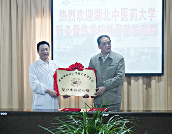 5月10日上午,我院舉行“湖北中醫(yī)藥大學(xué)針灸骨傷學(xué)院畢業(yè)生就業(yè)基地”簽約授牌儀式,這是湖北中醫(yī)藥大學(xué)在我市設(shè)立的首個(gè)畢業(yè)生就業(yè)基地。湖北中醫(yī)藥大學(xué)針灸骨傷學(xué)院章漢平院長、汪海洋書記及我院院領(lǐng)導(dǎo)出席授牌簽約儀式。