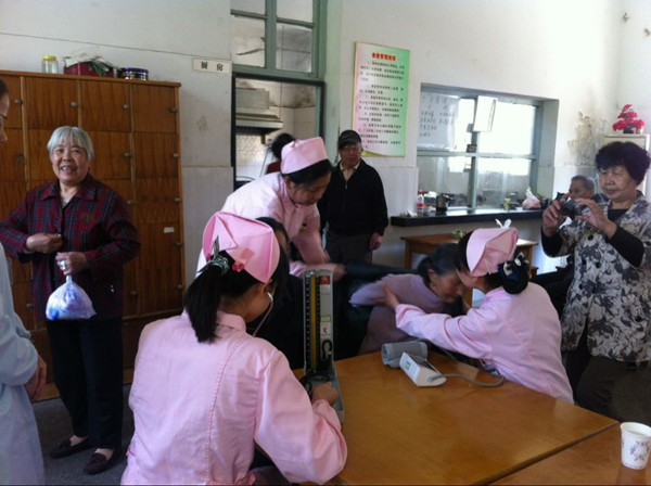 5-12國際護(hù)士節(jié)到來之際,舟山廣安骨傷醫(yī)院的護(hù)士們在5月6日這一天,來到了蘆花敬老院,她們?yōu)槔先藴?zhǔn)備了人手一份的小禮物。一進(jìn)院子,老人們都已經(jīng)圍坐在一起等候我們的到來,知道我們的來意后老人們都很高興,同去的還有內(nèi)科單主任、外科方醫(yī)生。我們將為他們提供咨詢及簡單的體檢。護(hù)士們?yōu)槔先藴y血壓,同他們談心,二位醫(yī)生也開始忙開了。老人們都很健談。雖然活動很簡單,但看到老人愉快的笑容真的使我們有中小成就。