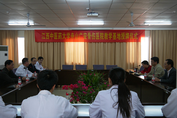 11月6日,江西中醫(yī)藥大學(xué)紀(jì)委書記劉青一行三人來我院參觀交流。雙方就醫(yī)院基本情況、中醫(yī)藥特色優(yōu)勢以及實習(xí)生學(xué)習(xí)生活情況進(jìn)行了座談。劉書記對我院實習(xí)生教學(xué)工作給予了肯定及感謝,并對學(xué)校與教學(xué)基地聯(lián)系交流等問題提出了建議。最后雙方負(fù)責(zé)人為“江西中醫(yī)藥大學(xué)教學(xué)醫(yī)院”揭牌。