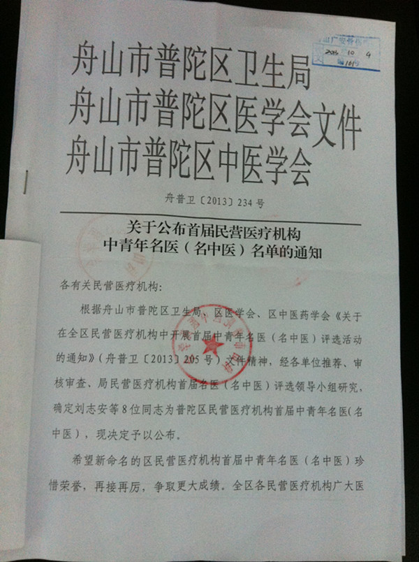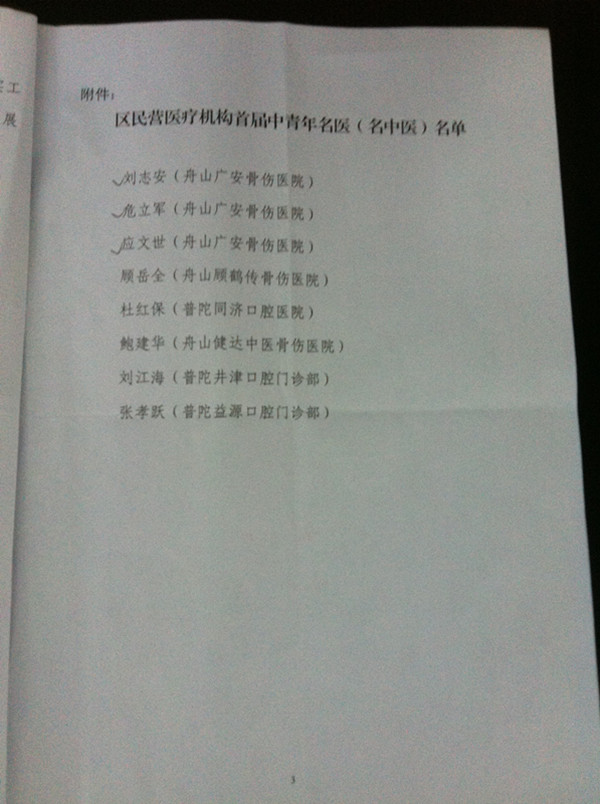 近日普陀區(qū)衛(wèi)生局民營醫(yī)療機構首屆名醫(yī)(名中醫(yī))評選活動圓滿結束。我院劉志安、危立軍、應文世被評為區(qū)民營醫(yī)療機構首屆中青年名醫(yī)(名中醫(yī))。