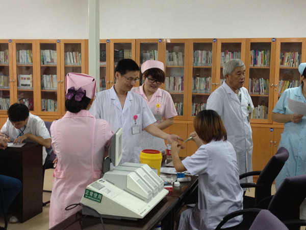 近期由于天氣高溫炎熱,高校放假,獻(xiàn)血人員相對較少,但手術(shù)病人有增無減。用血量也隨之增大,造成全國范圍血站供血緊缺。我市近1個(gè)多月來血供也相當(dāng)緊張,我院還有不少傷病員急需手術(shù)用血,我院醫(yī)務(wù)人員為了保證及時(shí)安全醫(yī)治病人,除了嚴(yán)格掌握用血指征,積極動(dòng)員家屬獻(xiàn)血外,主動(dòng)與市中心血站聯(lián)系,自原報(bào)名參加無償獻(xiàn)血。8月30日全院總共200余位職工,就有50多名醫(yī)務(wù)人員報(bào)名參加無償獻(xiàn)血,獻(xiàn)血34名,其中300m1以上23人,共計(jì)獻(xiàn)血近10000ml。正骨科的虞杰副主任為了保證順利獻(xiàn)血,暫時(shí)延期接種乙肝疫苗,他已累計(jì)無償獻(xiàn)血2000多ml,檢驗(yàn)科袁鳳迪因單位工作繁忙,加上晚上要帶小孩,身體消瘦,原本打算等下次再獻(xiàn),但當(dāng)她看到醫(yī)院同事們?nèi)绱藷崆榈胤瞰I(xiàn)愛心,毅然決定馬上獻(xiàn)血,她已累計(jì)獻(xiàn)血1000m1以上。但還是有十幾位同志由于近來工作量大,身體疲勞引起轉(zhuǎn)氨酶升高,有的剛上完夜班睡眠時(shí)間不足暫不能獻(xiàn)血,他們說下次一定爭取成功獻(xiàn)血。