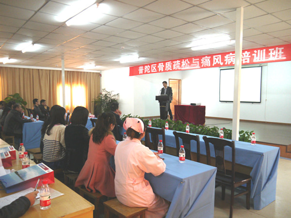 為進(jìn)一步提高全區(qū)醫(yī)務(wù)人員對骨質(zhì)疏松癥與痛風(fēng)病診治水平,經(jīng)研究并報(bào)請舟山市醫(yī)學(xué)繼續(xù)教育委員會同意, 2013年4月6日由區(qū)醫(yī)學(xué)會組織開展的骨質(zhì)疏松癥與痛風(fēng)病診治進(jìn)展培訓(xùn)班在我院舉行,培訓(xùn)特邀寧波市醫(yī)學(xué)會風(fēng)濕病分會副主任委員、寧波李惠利醫(yī)院主任醫(yī)師丁健教授以及我院劉志安副院長擔(dān)任此次培訓(xùn)主講,