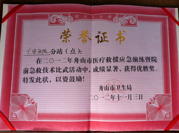 本次活動共有5個單位參加:舟山醫(yī)院總院急救站、普陀人民醫(yī)院急救站、舟山醫(yī)院中醫(yī)骨傷院區(qū)急救點、四一三醫(yī)院急救點、廣安醫(yī)院急救點。我院醫(yī)護(hù)人員及120駕駛員的表現(xiàn)優(yōu)異,獲得了本次活動的優(yōu)勝獎。通過此次活動,進(jìn)一步增強(qiáng)應(yīng)急處置隊伍的指揮調(diào)節(jié)能力、急救處置能力,從而規(guī)范各項院前急救措施,鍛煉院前應(yīng)急隊伍,提高我市院前急救工作水平。