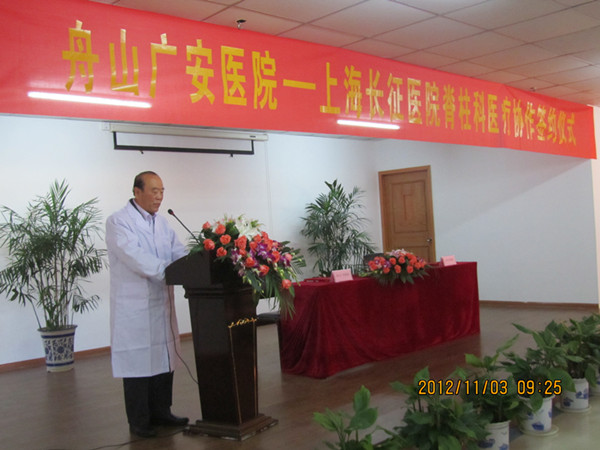 為了解決舟山海島群眾看病難,看名醫(yī)更難的難題,經(jīng)前期各項(xiàng)準(zhǔn)備,我院與上海長征醫(yī)院賈連順教授的專家團(tuán)隊(duì)將進(jìn)行長期定向協(xié)作,并于2012年11月3日上午隆重舉辦了協(xié)議簽訂暨專家首診儀式。上海長征醫(yī)院賈連順教授、邵將教授、錢列教授等專家出席本次簽約儀式,我院郭維杰院長、劉志安副院長以及全體工作人員共同參與本次簽約儀式,舟山市社保局醫(yī)療工傷管理中心石主任、普陀區(qū)衛(wèi)生局汪副局長以及海氏集團(tuán)領(lǐng)導(dǎo)也共同參與,并有多加媒體進(jìn)行拍攝采訪。