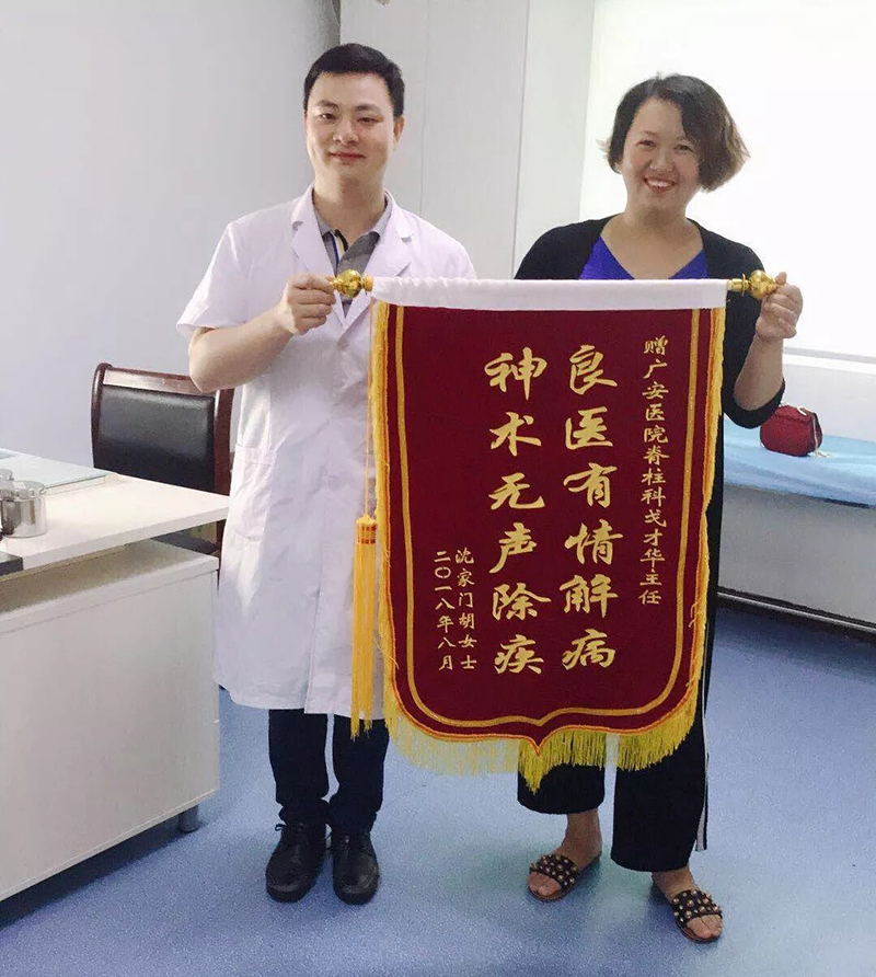 在醫(yī)患矛盾日益突出、醫(yī)患關系日益緊張的今天,此項殊榮是脊柱科全體醫(yī)護人員的精神鼓舞。脊柱科全體醫(yī)護人員將以這面錦旗為新起點,創(chuàng)醫(yī)院發(fā)展,保人民健康;與全院同仁一起攜手撐起生命之重托,將一個又一個脆弱的生命之燭重新燃起。