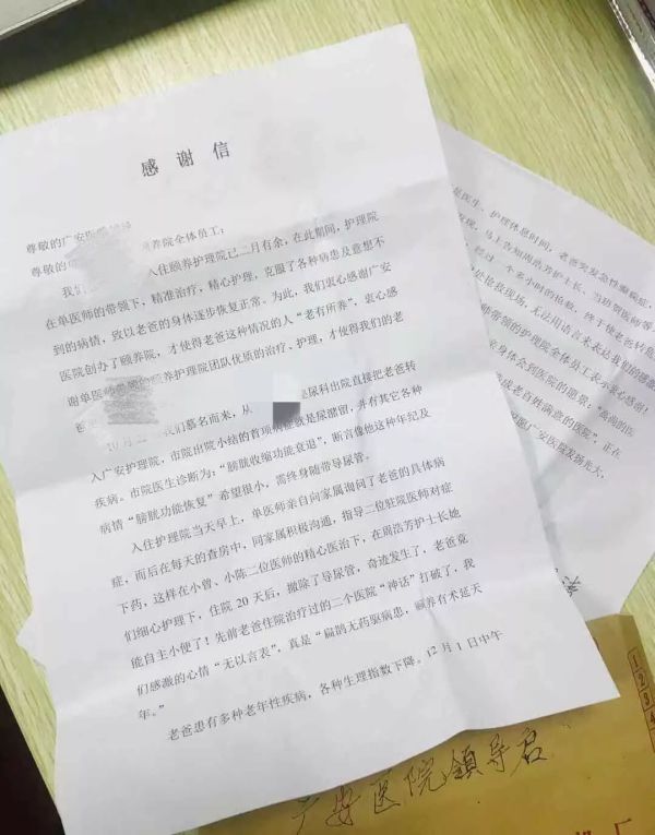 一字一句,都包含了患者滿滿的感謝之情。我們第一時(shí)間把這封感謝信轉(zhuǎn)交給我們廣安頤養(yǎng)院的醫(yī)護(hù)人員,他們這樣說......