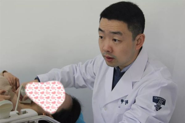 陳涵→來自上海長海醫(yī)院普外科(甲狀腺外科)的陳涵教授,為預(yù)約而來的患者做甲狀腺B超檢查
