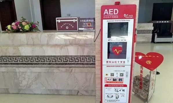 目前全國各地的公共場所都配置了AED(自動體外除顫儀),市紅會也在蜈蚣峙碼頭、普陀山機(jī)場等地配置了42臺AED。一旦發(fā)現(xiàn)有人心臟驟停,救護(hù)員應(yīng)立即進(jìn)行心肺復(fù)蘇,并請人去取最近的AED,并按語音提示進(jìn)行操作。