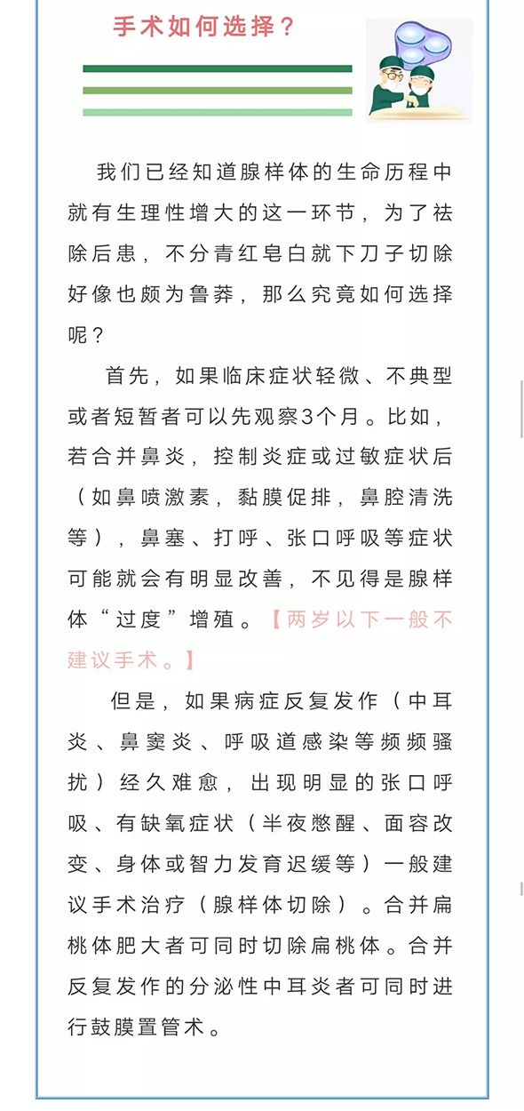 年輕媽媽們要認(rèn)真觀察小朋友的細(xì)微變化。打呼嚕不是小事,上課注意力不集中可能也有因可尋(缺氧)??傊?,平時(shí)應(yīng)注意鍛煉身體,增強(qiáng)體質(zhì),隨氣溫變化調(diào)整衣物避免感冒,防范于未然是最重要的。如果有癥狀出現(xiàn),要及時(shí)就醫(yī),力求大事化小、小事化了,萬萬不可積小成大喔!