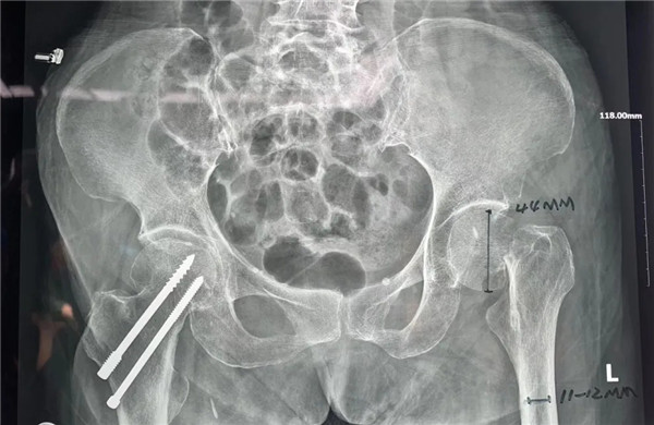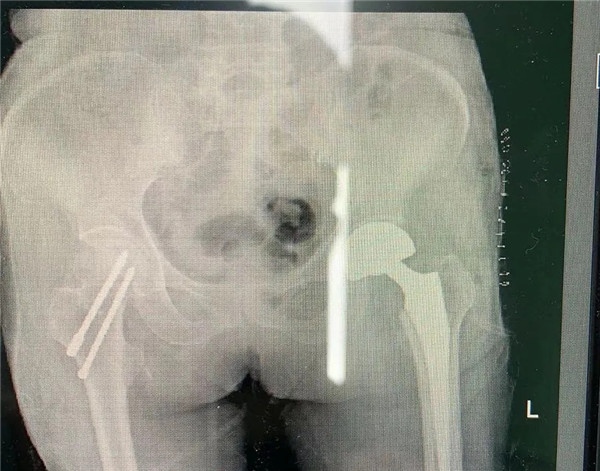 家人趕快第一時間將她送至我院,經(jīng)拍片后診斷為:左髖股骨頸頭下型骨折,病人入住關節(jié)科病區(qū)。