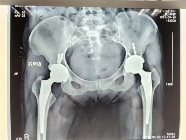 2017年5月,在朋友的建議下,洪女士來到我院,經(jīng)CT診斷雙側(cè)股骨頭無菌性壞死。便在危立軍副院長的建議下,做了左髖關(guān)節(jié)置換術(shù)。術(shù)后,洪女士恢復(fù)良好。