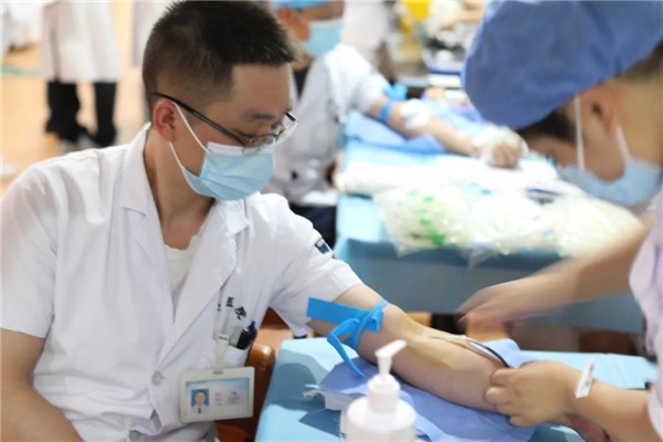 夏季是用血高峰,為保障我市臨床用血需求,緩解近期臨床用血緊張,保證患者生命健康安全,8月5日下午,我院組織員工開展無償獻(xiàn)血活動。本次活動中既有醫(yī)院領(lǐng)導(dǎo)、醫(yī)生、護士、護工、實習(xí)生、導(dǎo)醫(yī)等醫(yī)務(wù)人員,也有后勤工作人員,雖然大家來自不同崗位,但都懷著一顆同樣的博愛仁義之心。
