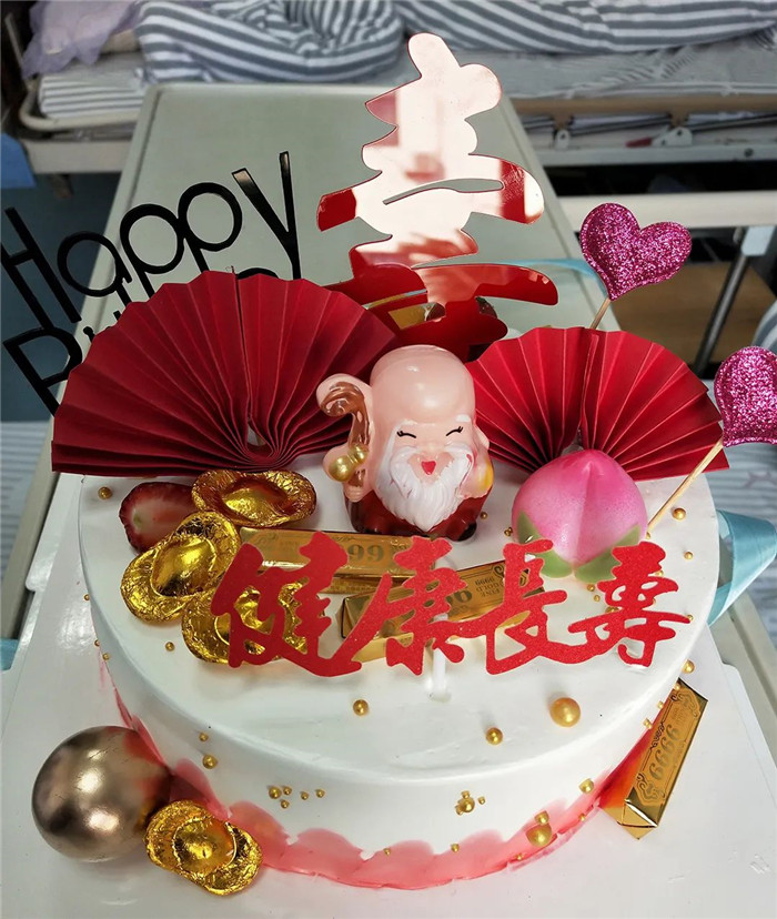 據(jù)護士長胡飛燕介紹,在無意中獲知當天是陳阿公79歲生日,而在舟山,上了年紀的人過生日都有“滿九”的習俗。所以,病區(qū)一大早就訂制了蛋糕,為老人祝壽。