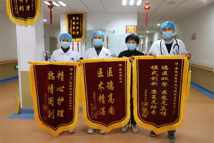 “感謝你們多年來對(duì)我父親的照顧,送錦旗也是我一直以來的心愿。”看似平凡的感謝,宛如一股暖流流淌在每一位醫(yī)護(hù)人員的心里。