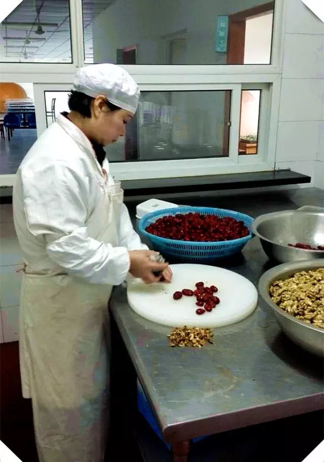 早在前一天,食堂工作人員就忙開了,剝蓮子、洗紅棗、切核桃仁……食堂負責人說:“這次準備的臘八粥里共有十多味材料,希望在這個特殊的日子里,為每一位病患和醫(yī)護人員送去溫暖。