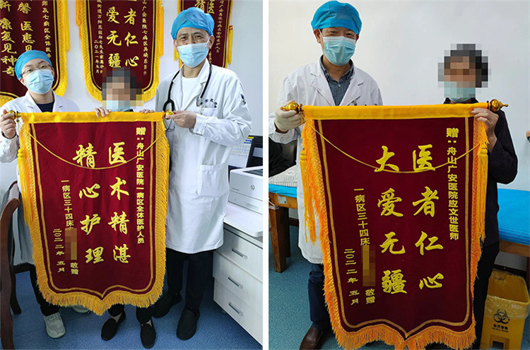 “衷心感謝您對我無微不至的照護(hù),真的是不怕臟、不怕累,讓我特別的感動,無以言表……”5月5日,舟山廣安醫(yī)院應(yīng)世文副院長和一病區(qū)全體醫(yī)護(hù)人員,分別收到了一名患者送來的錦旗,錦旗上“醫(yī)者仁心”“大愛無疆”“醫(yī)術(shù)精湛”“精心護(hù)理”等溢美之詞赫然在目,句句充滿了贊許和溫情,溫暖著科里每個醫(yī)護(hù)人員的心。