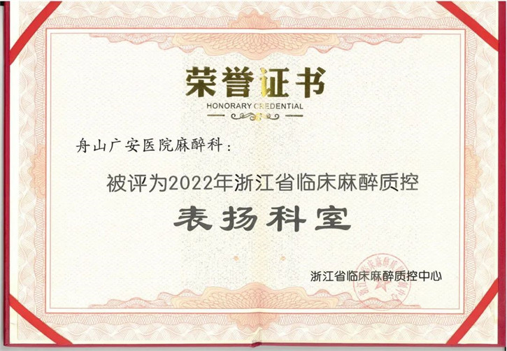 “浙江省臨床麻醉質(zhì)控表?yè)P(yáng)科室”!