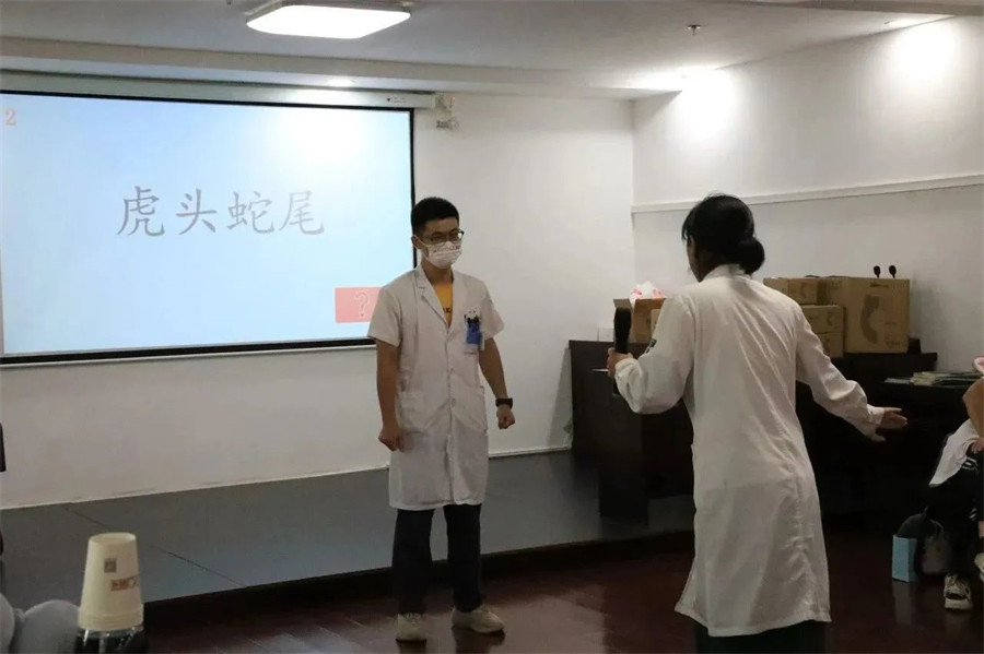 這一次題目?jī)?nèi)容涵蓋醫(yī)療專業(yè)名詞、成語、古詩,難度系數(shù)可不是一般的大,看著比劃者手舞足蹈,猜詞者卻一頭霧水,場(chǎng)下觀眾可是比臺(tái)上參賽者都著急,有人出主意,有人大笑,場(chǎng)面熱鬧非凡。最終裴燕和鄧佳婧憑借多年默契,拿下全場(chǎng)最佳。