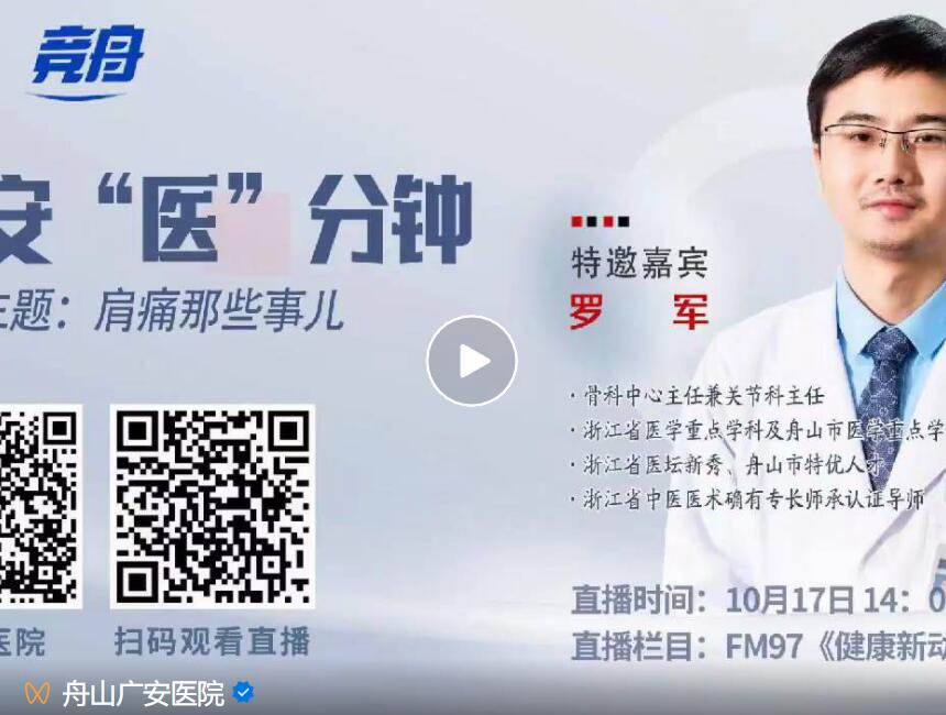 為了讓更多人了解健康知識,舟山廣安醫(yī)院攜手競舟APP、FM97舟山交通音樂廣播共同打造《廣安“醫(yī)”分鐘》特別欄目。舟山廣安醫(yī)院資深專家做客直播間,普及大眾關(guān)心的醫(yī)療知識,F(xiàn)M97和競舟同步直播。