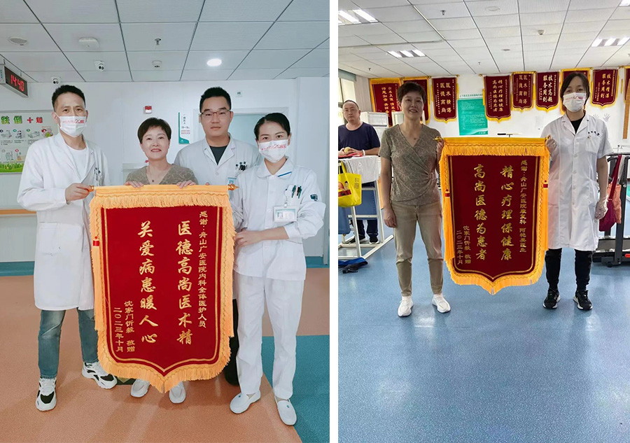 經(jīng)過治療,患者忻先生目前回家休養(yǎng),家屬對康復情況比較滿意,特送來兩面錦旗表示感謝。