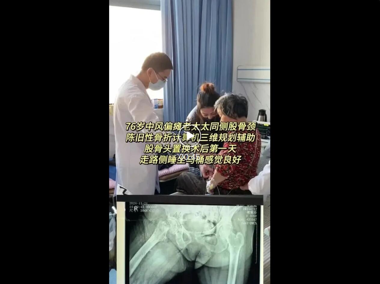 但不幸再次降臨,阿婆在家起床時不慎摔倒,右髖部疼痛難忍,經(jīng)過醫(yī)院檢查后確認,傅阿婆為右側(cè)股骨頸骨折。
