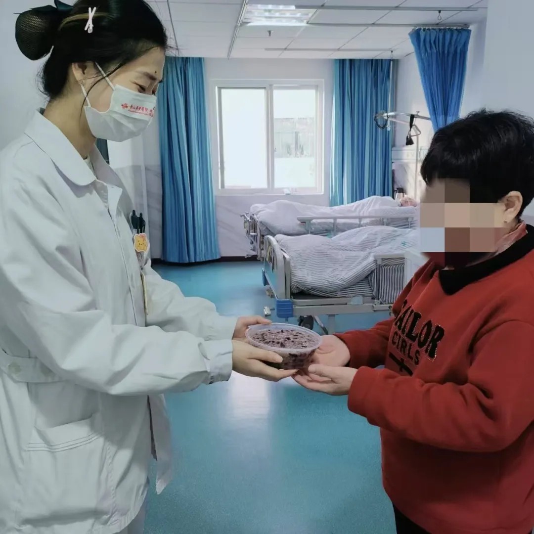 隨后,醫(yī)院工作人員將這些熱氣騰騰的臘八粥分裝打包,由工作人員送往各個病房。每到一處,工作人員們都會將臘八粥遞到病人手中,并送上節(jié)日的問候與祝福。病人和家屬們紛紛表示,在這樣特殊的節(jié)日里,醫(yī)院還能想到他們,讓他們感受到了家的溫暖。