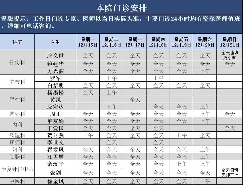 義診時(shí)段:12月20日、1月10日、1月24日(周六)