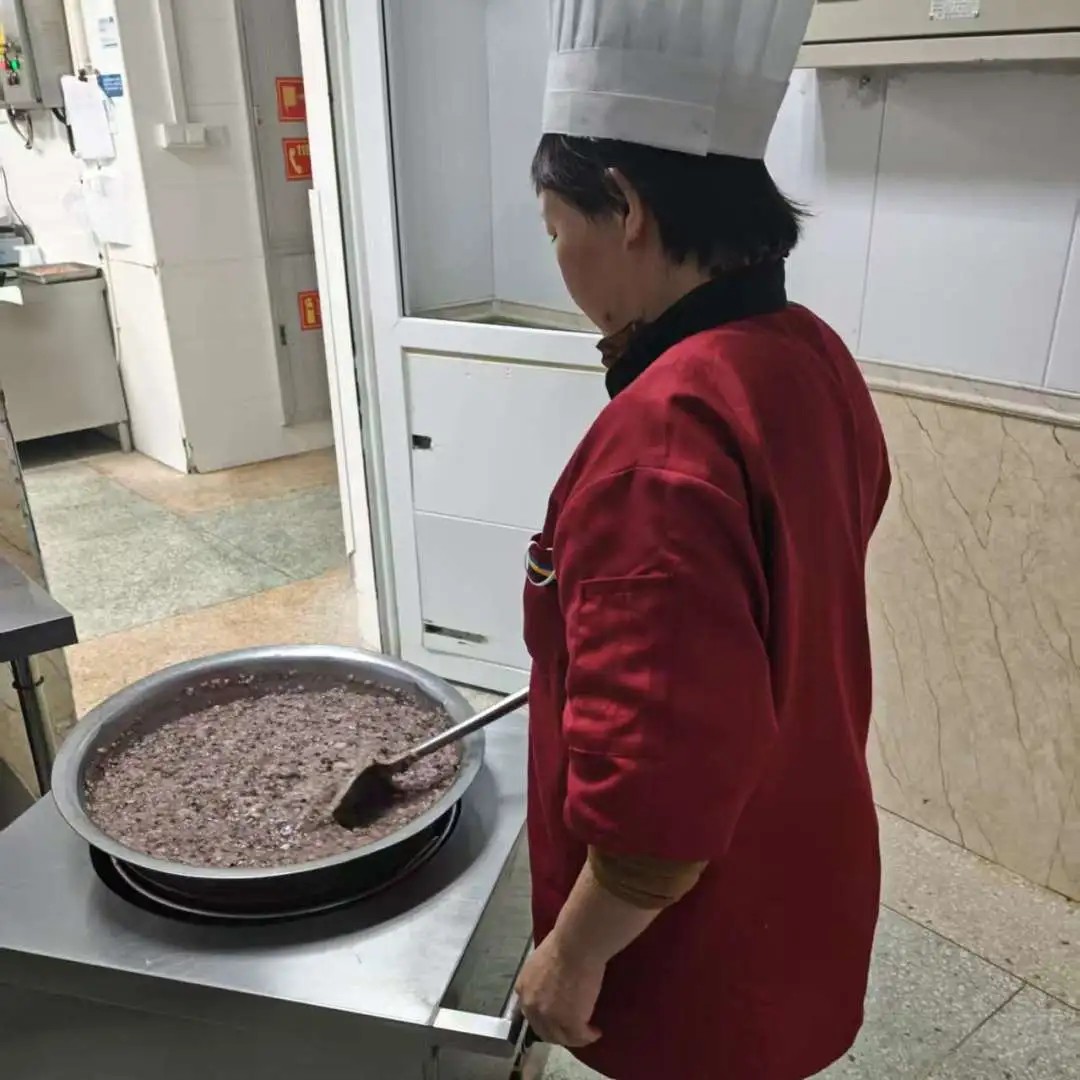 天色未亮,食堂已燈火通明。工作人員精心備好糯米、紅棗、蓮子、桂圓、紅豆等食材,細心清洗、慢火熬煮。隨著熱氣裊裊升起,軟糯香甜的臘八粥逐漸飄香,也熬進了我們對于健康、平安、團圓的美好祈愿。
