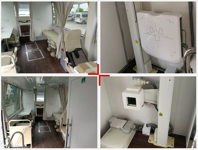 車內(nèi)配備車載數(shù)字DR、便捷式彩超、心電圖機、電測聽等先進設(shè)備;設(shè)有獨立舒適的B超檢查區(qū)、心電檢查區(qū)、采血區(qū)和先進的影像工作站等,車上配備冷暖空調(diào),流動體檢車上內(nèi)部布局合理,保證了私密性。