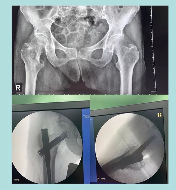 幾天前,蒲奶奶不小心摔了一跤倒地不起,到家附近醫(yī)院檢查后被診斷為右側(cè)股骨粗隆粉碎性骨折。醫(yī)生告知家屬,這種骨折對(duì)于老人來(lái)說(shuō)非常棘手,建議保守治療。為提高老人生活質(zhì)量,家人商量后決定放手一搏,在打聽(tīng)到我院關(guān)節(jié)科對(duì)這種病例治療效果非常理想后,立即轉(zhuǎn)往我院。