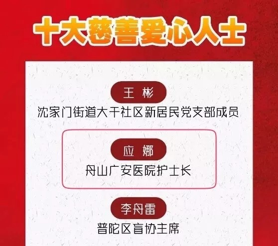 涓涓細(xì)流,匯成大愛。在普陀區(qū)慈善總會(huì)、普陀區(qū)紅十字會(huì)等共同組織發(fā)起的普陀區(qū)首屆“慈善愛心榜”評選活動(dòng)中,應(yīng)娜榮獲了十大慈善愛心人士這一殊榮。