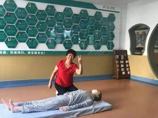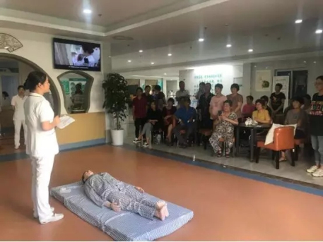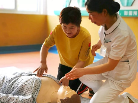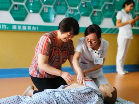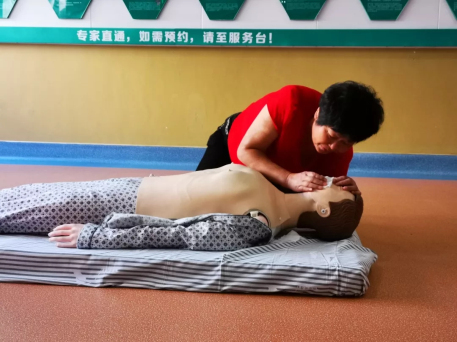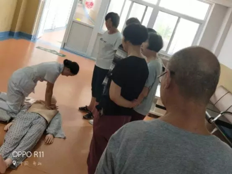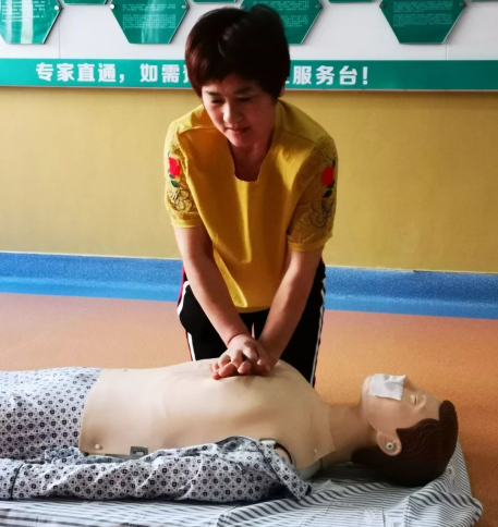 在醫(yī)護(hù)人員通俗易懂、形象逼真的講解后,部分家屬及患者現(xiàn)場(chǎng)體驗(yàn)了心肺復(fù)蘇的操作流程,通過(guò)耐心指導(dǎo),部分操作者能很好的完成此次操作。