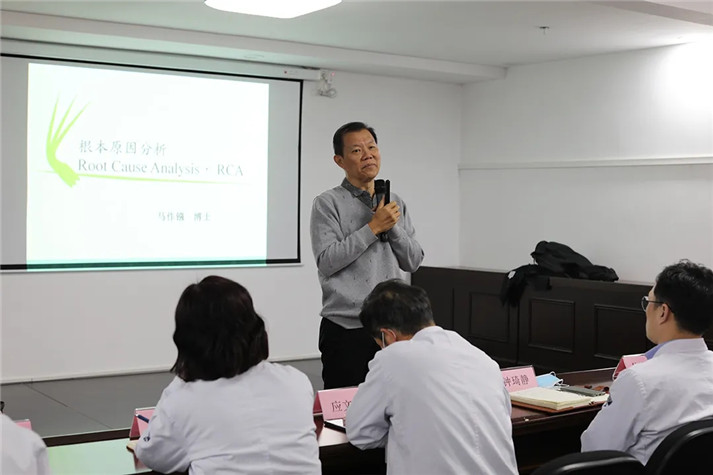 培訓會上,馬教授結合當前醫(yī)療機構發(fā)展趨勢,從國內外醫(yī)療衛(wèi)生事業(yè)發(fā)展狀況,醫(yī)患溝通方法、醫(yī)療質量定義等方面入手,就RCA根本原因分析進行了深入細致的講解,包括:根本原因分析的思維、根本原因進行步驟、執(zhí)行改善之行動計劃等。馬教授指出,醫(yī)療根本原因是指導致醫(yī)療執(zhí)行失效或結果不如預期的原因。進行根本原因分析核心價值是分析著眼于整個系統(tǒng)及過程面,而非個人執(zhí)行中的咎責;找出預防措施的工具,避免未來類似事件再發(fā)生;最終成果是要產出可行的『行動計劃』。馬教授的講解幽默風趣,深入淺出,現(xiàn)場氣氛熱烈,大家都感到興趣盎然、意猶未盡,同時對全面質量管理有了更深刻的認識。
