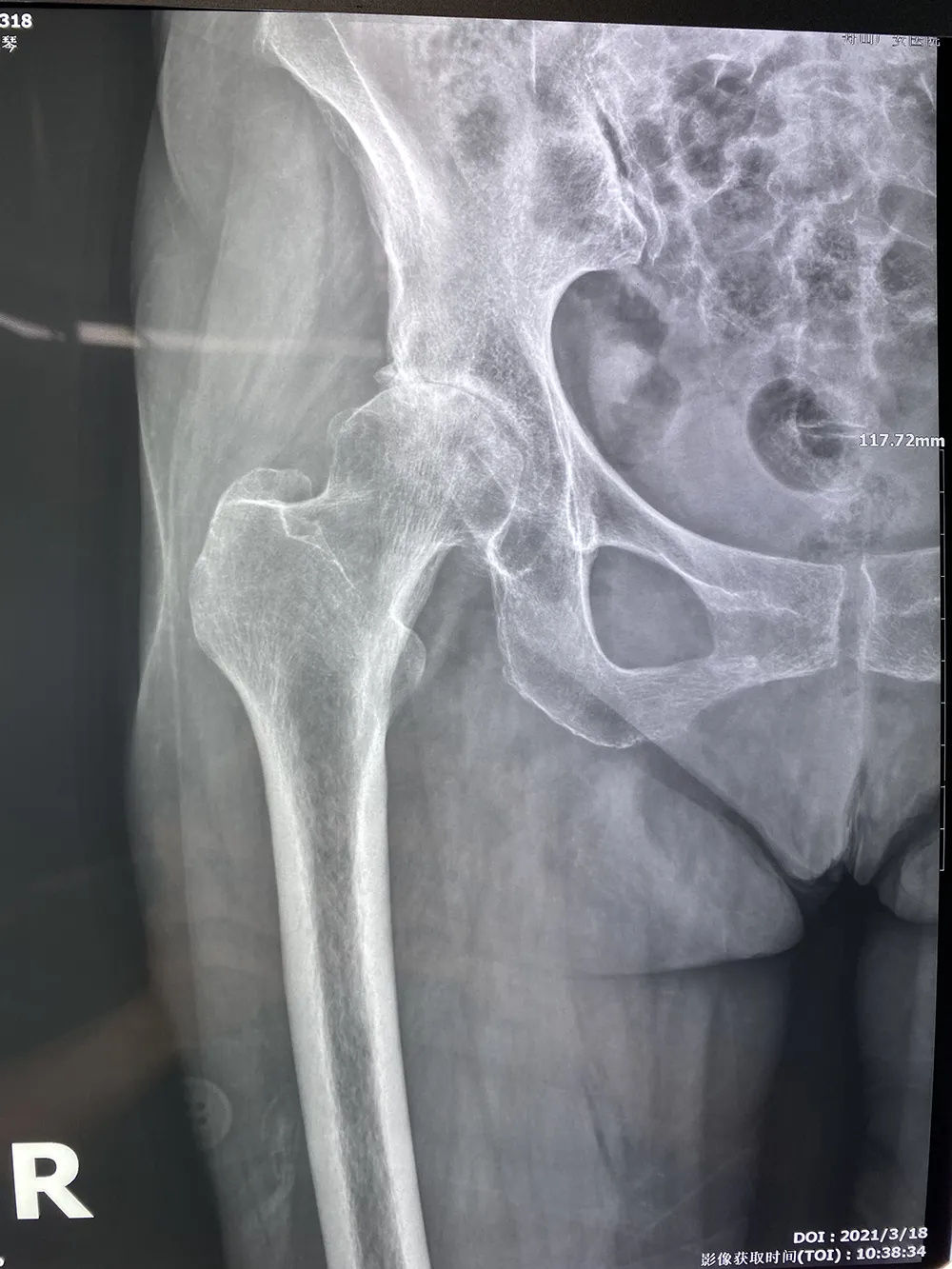 現(xiàn)年76歲的倪阿姨,平時(shí)有慢性支氣管炎、腦梗死、骨質(zhì)疏松癥、腰椎間盤(pán)突出等多種基礎(chǔ)病。曾在多家醫(yī)院就診,均建議其行人工髖關(guān)節(jié)置換術(shù),患者因擔(dān)心手術(shù)的并發(fā)癥拒絕手術(shù)治療,近半年右髖關(guān)節(jié)疼痛難忍,無(wú)法行走來(lái)我院就診。
