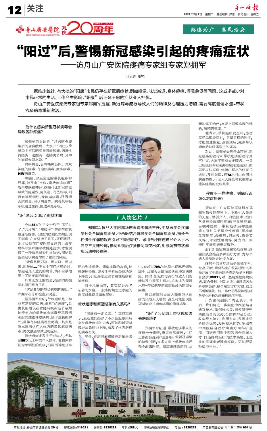 廣安人懷揣著對于醫(yī)療的敬畏和對舟山人的大愛,將以更加昂揚(yáng)的姿態(tài)和海納百川的胸懷,不斷把學(xué)科建設(shè)和醫(yī)療技術(shù)水平推向更高的境界,服務(wù)舟山、造福社會。