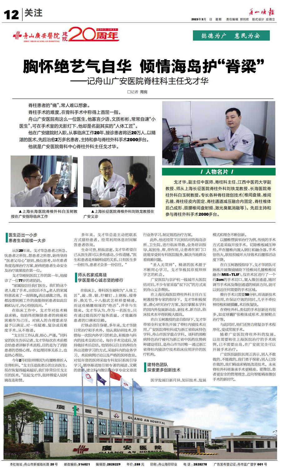 胸懷絕藝氣自華 傾情海島護(hù)“脊梁"——記舟山廣安醫(yī)院脊柱科主任戈才華