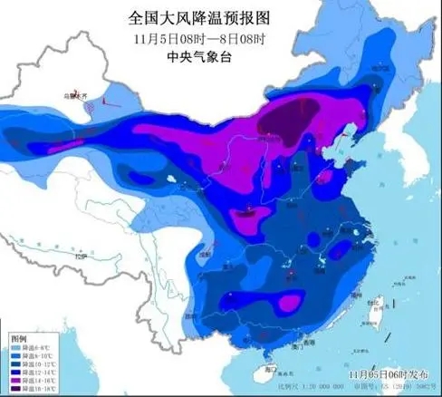 今日,中央氣象臺發(fā)布最新寒潮黃色預警,我國將迎下半年來最強寒潮天氣。受強冷空氣影響,11月7日夜里到下周初,我市將出現一次“斷崖式降溫”,最低氣溫將跌至10℃。此次降溫幅度,絕對是今年入秋以來最高級別。再加上大風、雨水“作祟”,體感的寒意越發(fā)明顯。